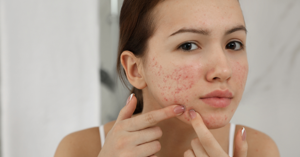 Many individuals develop acne when the pores become blocked due to excess oil, dead skin cells, or wrong skincare products. This pore blockage leads to blackheads, whiteheads, painful pimples, and eventually acne scars.